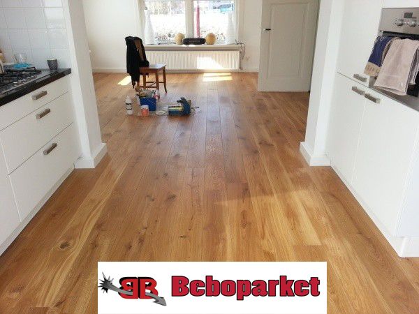 150m2 Eiken lamel parket naturel geolied deze planken zijn 19cm breed 15mm dik.